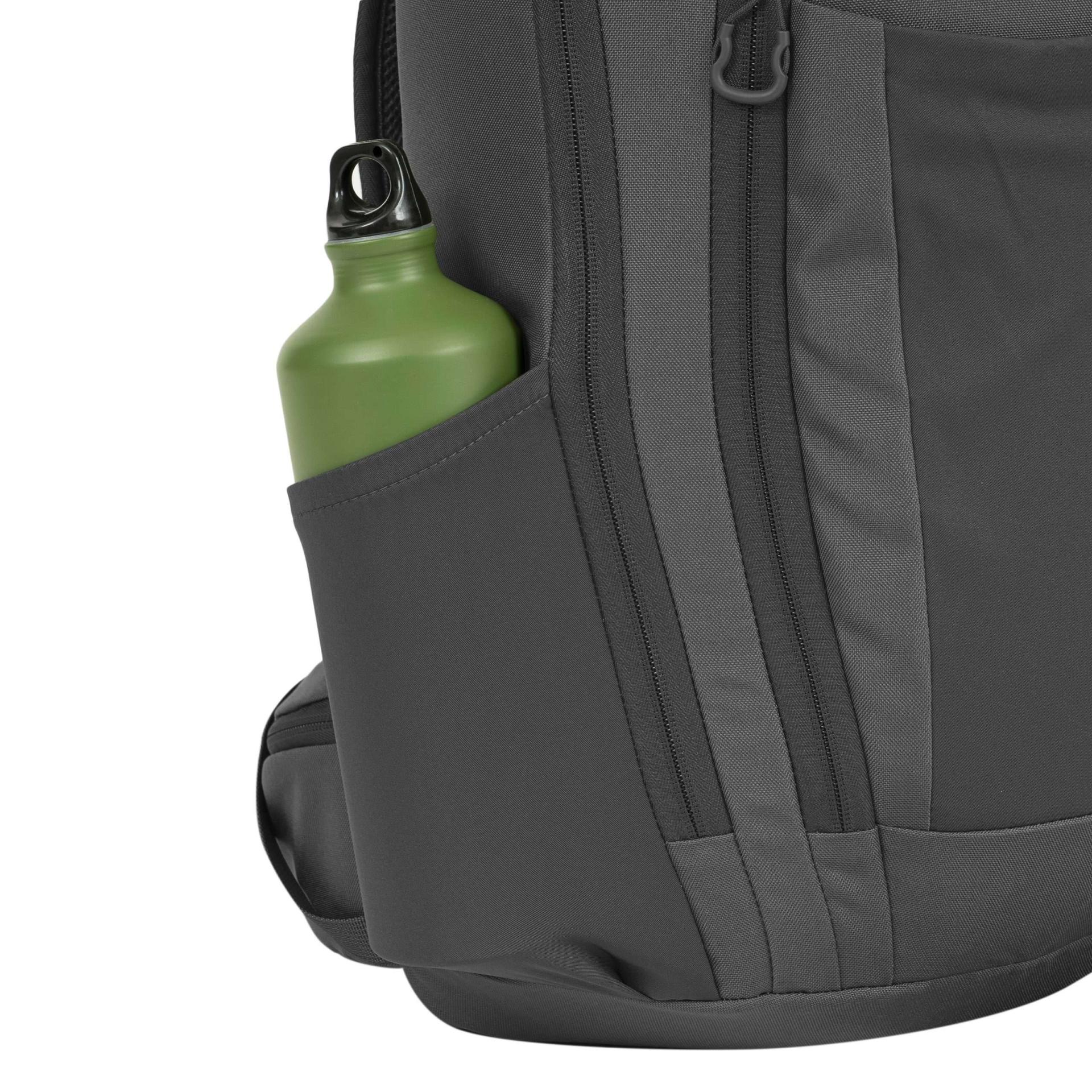 Záda batohu jsou bohatě polstrována pomocí 3D síťoviny jejíž tvar zachovává středový kanálek zlepšující odvětrávání. V horní části zad naleznete klasické látkové madlo na přenášení. Nosné popruhy jsou plně nastavitelné, polstrované, disponují stabilizačními popruhy, plastovými triangly, průvleky na protažení hadičky hydratačního vaku a výškově nastavitelným elastickým hrudním popruhem, který je spínán plastovou přezkou. Bederák batohu je částečně polstrovaný, spínaný plastovou přezkou a na obou stranách disponuje menšími kapsami uzavíranými zipem. Na bocích batohu naleznete tři řady redukované MOLLE/PALS vazby a elastické kapsy. Hlavní chlopeň batohu je opatřena pruhem MOLLE/PALS vazby, prostornou středovou přihrádkou, vrchní kapsou a malým VELCRO panelem.